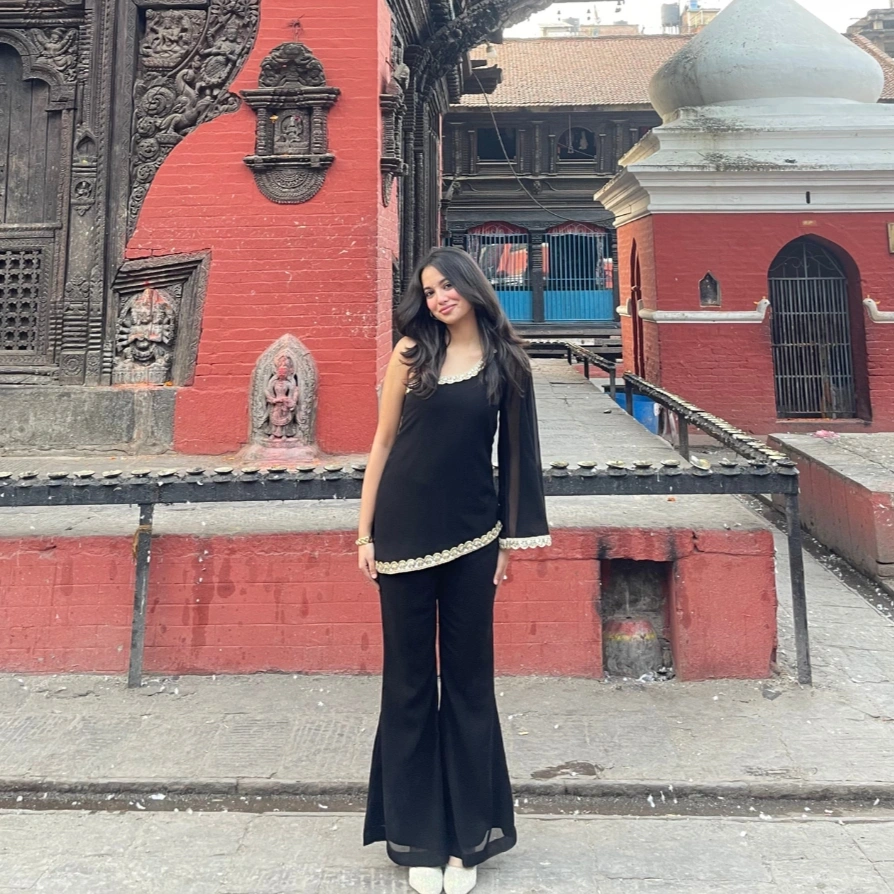 Made from high-quality georgette fabric, the kurti offers a soft, flowy drape that enhances your look with a premium finish. For added comfort, it includes a luxurious crepe silk inner lining, ensuring smooth wear throughout the day or evening.
