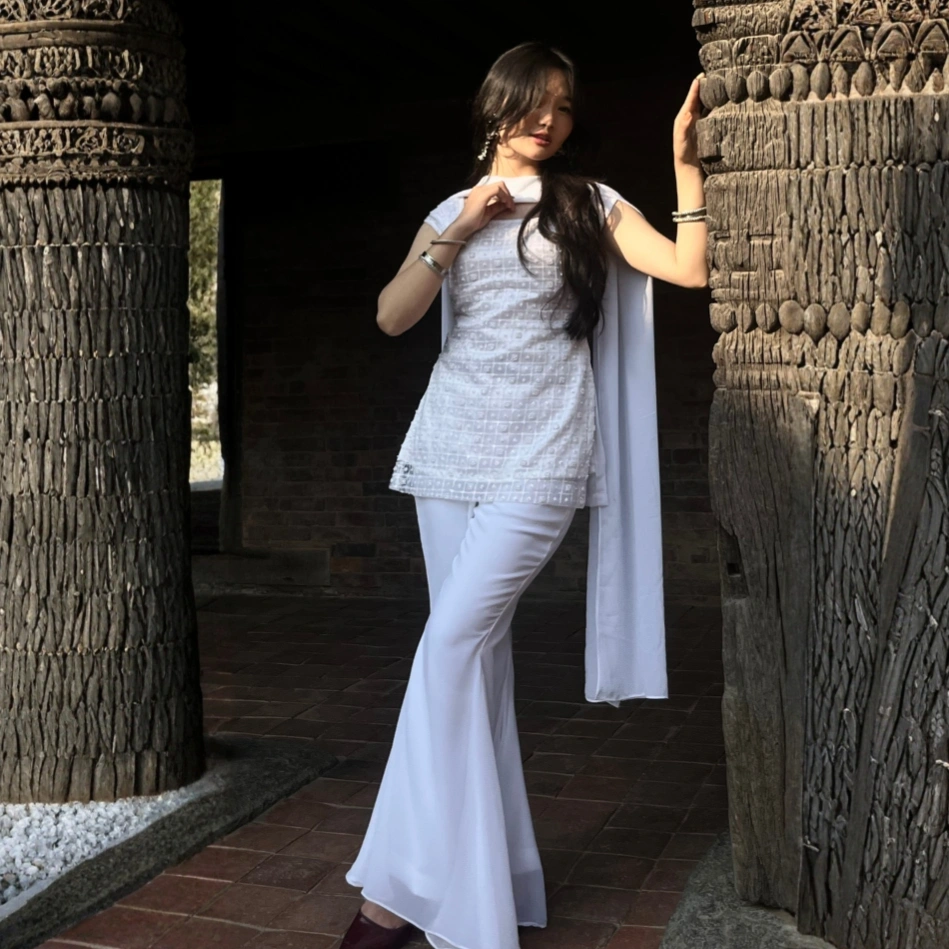The highlight of this kurti set is its heavy embroidery work, featuring intricate detailing that reflects exceptional craftsmanship and cultural artistry. Every stitch adds richness, making it a perfect choice for weddings, celebrations, cultural functions, and festive gatherings.