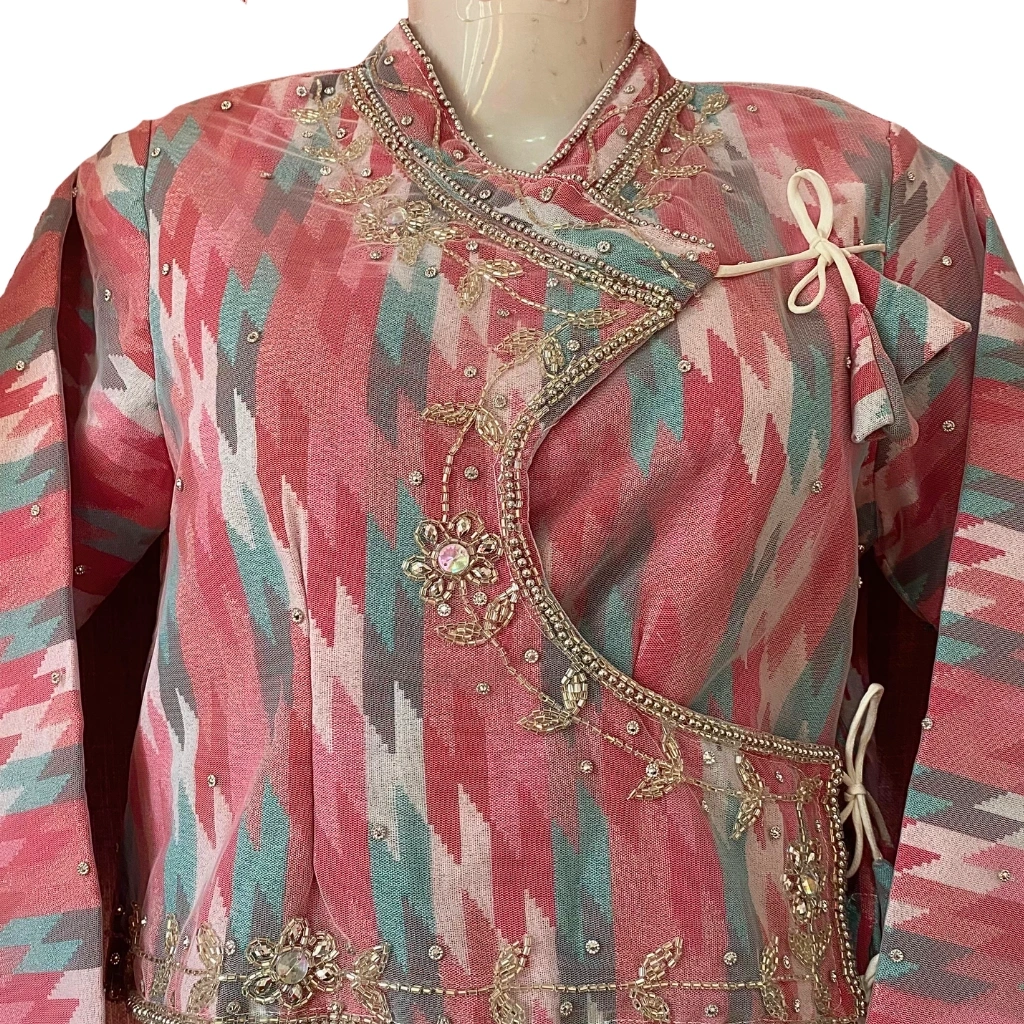 A timeless expression of Nepali heritage, our Dhaka Chaubandi Blouse is crafted to celebrate tradition with refined elegance. Made from authentic Dhaka fabric, this piece carries the richness of culture while embracing a modern, structured silhouette.