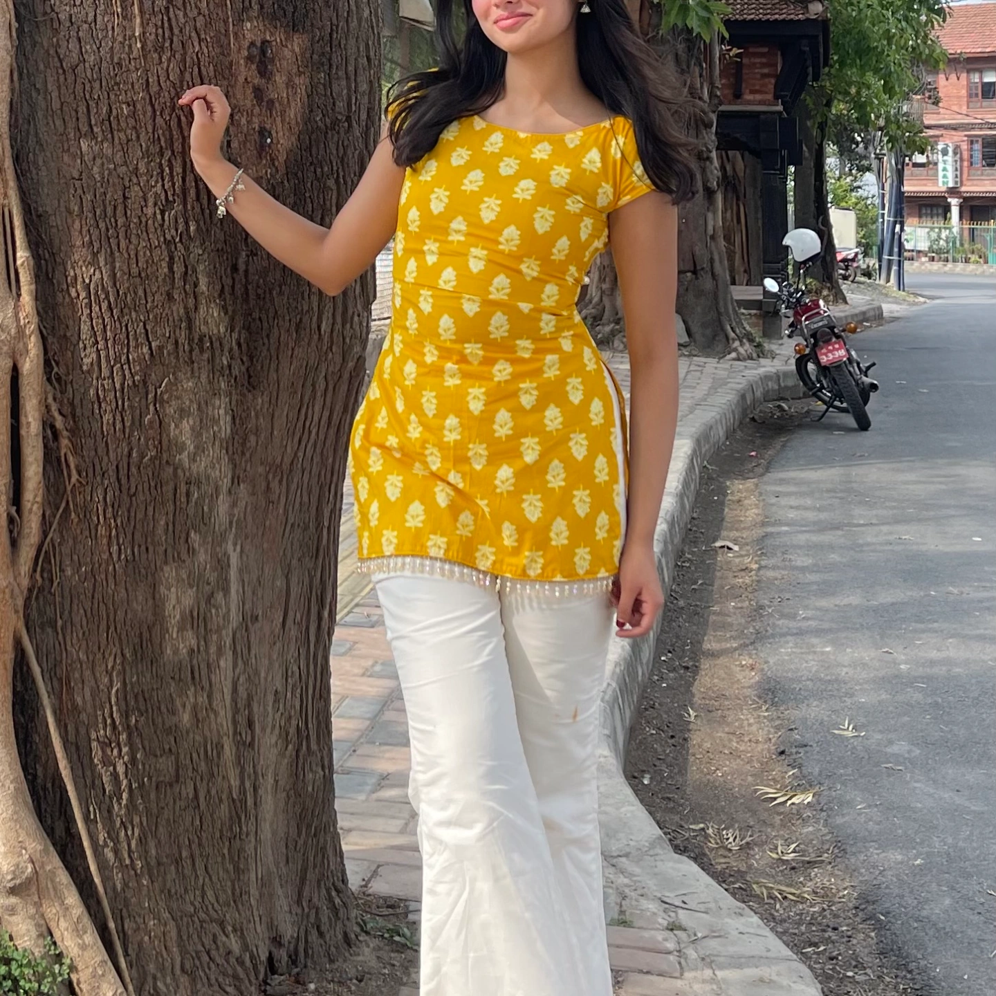 Inspired by the radiant beauty of the Sunflower, this kurti captures the essence of warmth and elegance. The rich mustard base is adorned with delicate floral motifs, creating a fresh and lively look. Crafted from soft, breathable fabric, it ensures comfort for all-day wear. The subtle detailing along the hem adds a refined touch, making it perfect for both casual outings and festive moments. Pair it with jeans or traditional bottoms for a stylish blend of modern and ethnic charm.